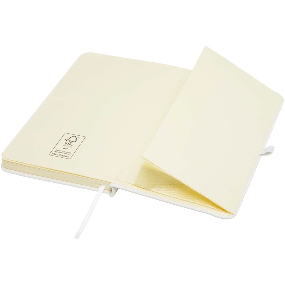 Das Spectrum Plus A6 Hardcover Notizbuch mit abgerundeten Ecken ist nicht nur ein unentbehrlicher Begleiter im Büro, sondern auch ein hervorragender Weg, um für Ihre Marke zu werben. Das Notizbuch aus Karton mit weichem Einband und 80 linierten, cremefarbenen Seiten (70 g/m²) eignet sich ideal für schnelle Ideen oder längere Notizen. Das Notizbuch ist mit Stiftschlaufe, elastischem Verschluss, Lesebändchen und erweiterbarer Tasche ausgestattet.
