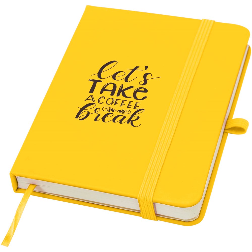 Das Spectrum Plus A6 Hardcover Notizbuch mit abgerundeten Ecken ist nicht nur ein unentbehrlicher Begleiter im Büro, sondern auch ein hervorragender Weg, um für Ihre Marke zu werben. Das Notizbuch aus Karton mit weichem Einband und 80 linierten, cremefarbenen Seiten (70 g/m²) eignet sich ideal für schnelle Ideen oder längere Notizen. Das Notizbuch ist mit Stiftschlaufe, elastischem Verschluss, Lesebändchen und erweiterbarer Tasche ausgestattet.