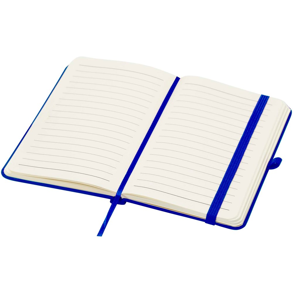 Das Spectrum Plus A6 Hardcover Notizbuch mit abgerundeten Ecken ist nicht nur ein unentbehrlicher Begleiter im Büro, sondern auch ein hervorragender Weg, um für Ihre Marke zu werben. Das Notizbuch aus Karton mit weichem Einband und 80 linierten, cremefarbenen Seiten (70 g/m²) eignet sich ideal für schnelle Ideen oder längere Notizen. Das Notizbuch ist mit Stiftschlaufe, elastischem Verschluss, Lesebändchen und erweiterbarer Tasche ausgestattet.