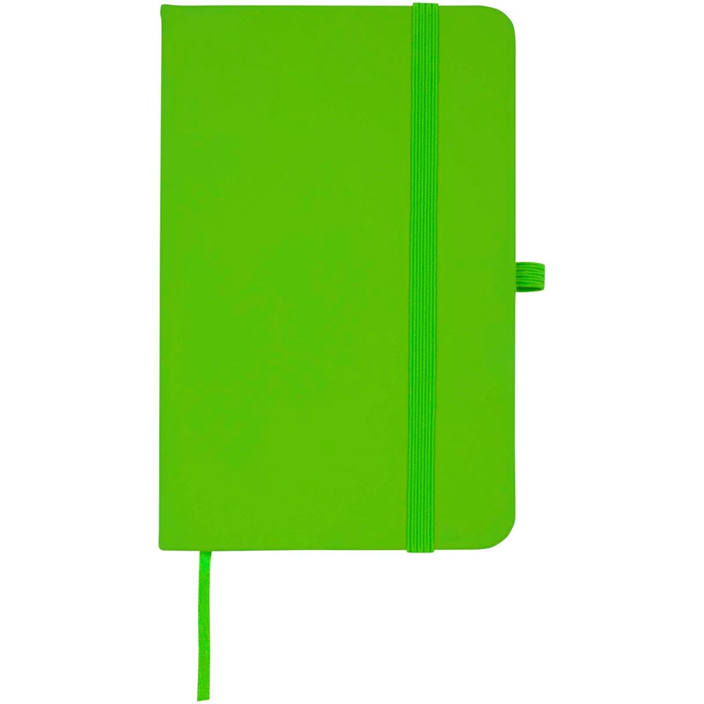 Das Spectrum Plus A6 Hardcover Notizbuch mit abgerundeten Ecken ist nicht nur ein unentbehrlicher Begleiter im Büro, sondern auch ein hervorragender Weg, um für Ihre Marke zu werben. Das Notizbuch aus Karton mit weichem Einband und 80 linierten, cremefarbenen Seiten (70 g/m²) eignet sich ideal für schnelle Ideen oder längere Notizen. Das Notizbuch ist mit Stiftschlaufe, elastischem Verschluss, Lesebändchen und erweiterbarer Tasche ausgestattet.