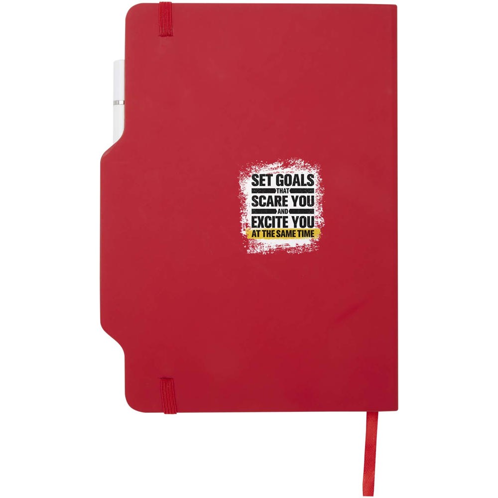 Das Nexus A5 Hardcover Notizbuch mit Stift/Bleistift-Kombi umfasst 80 cremefarbene, linierte Seiten aus 70 g/m² Papier, abgerundete Ecken, einen elastischen Verschluss und ein Lesebändchen. Der Stift hat zwei Köpfe, von denen der eine ein Füller mit schwarzer Tinte und der andere ein Bleistift ist. Schreiblänge des Stiftes: 1000 Meter. Schreibspitze: 1 mm.