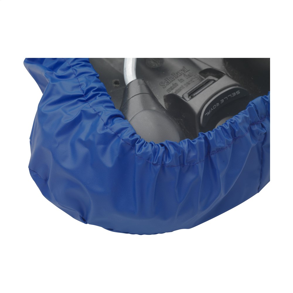 Sattelüberzug aus recyceltem PVC (60% recyceltes PVC und 40% reines PVC). Jeder Sattelüberzug ist innen mit einer Pappfolie versehen, damit er nicht knittert. Das Gummiband unten ist bei diesem Modell nicht sichtbar, es ist sauber verarbeitet. Der Bezug schützt den Sattel vor Schmutz und Feuchtigkeit (nicht 100% wasserdicht).