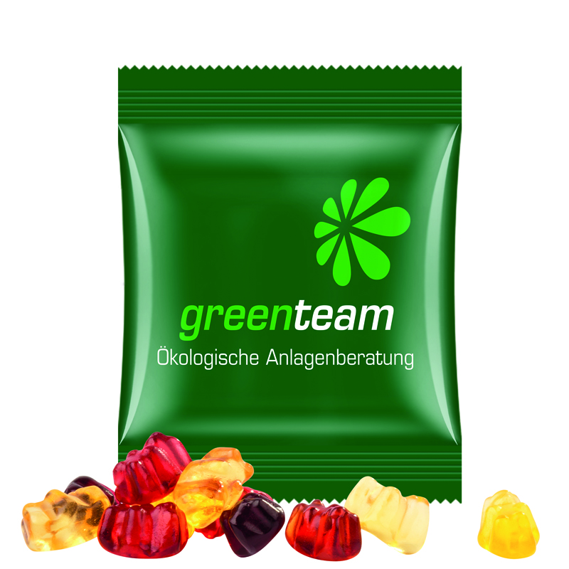 Minitüte 15 g, kompostierbare Folie weiß, Trolli Fruchtgummibären, 30% Fruchtsaftqualität Exquisit