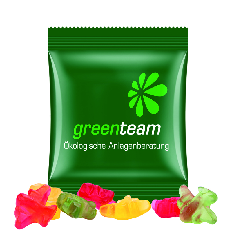 Minitüte 10 g, kompostierbare Folie weiß, Trolli Fruchtgummi Flugzeuge