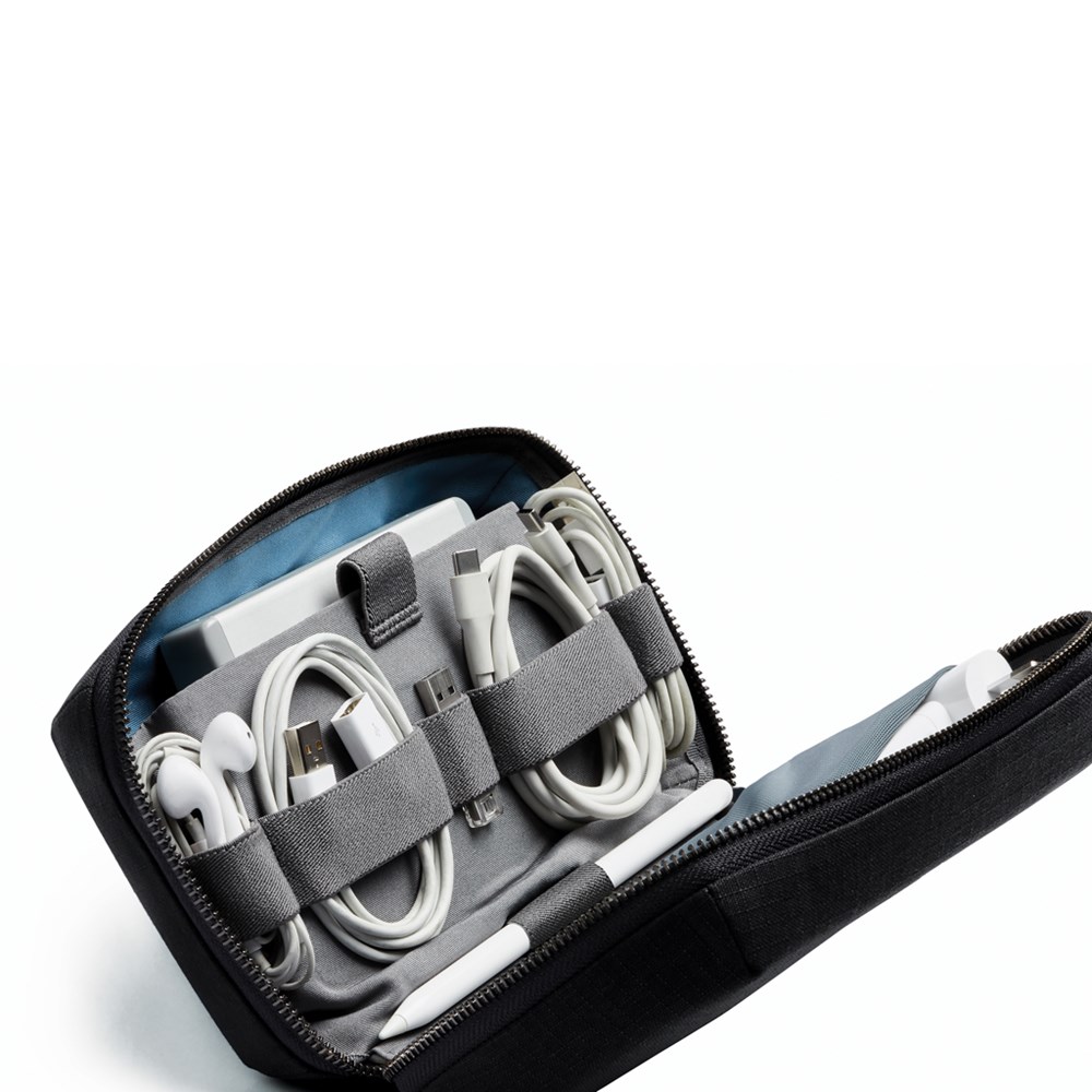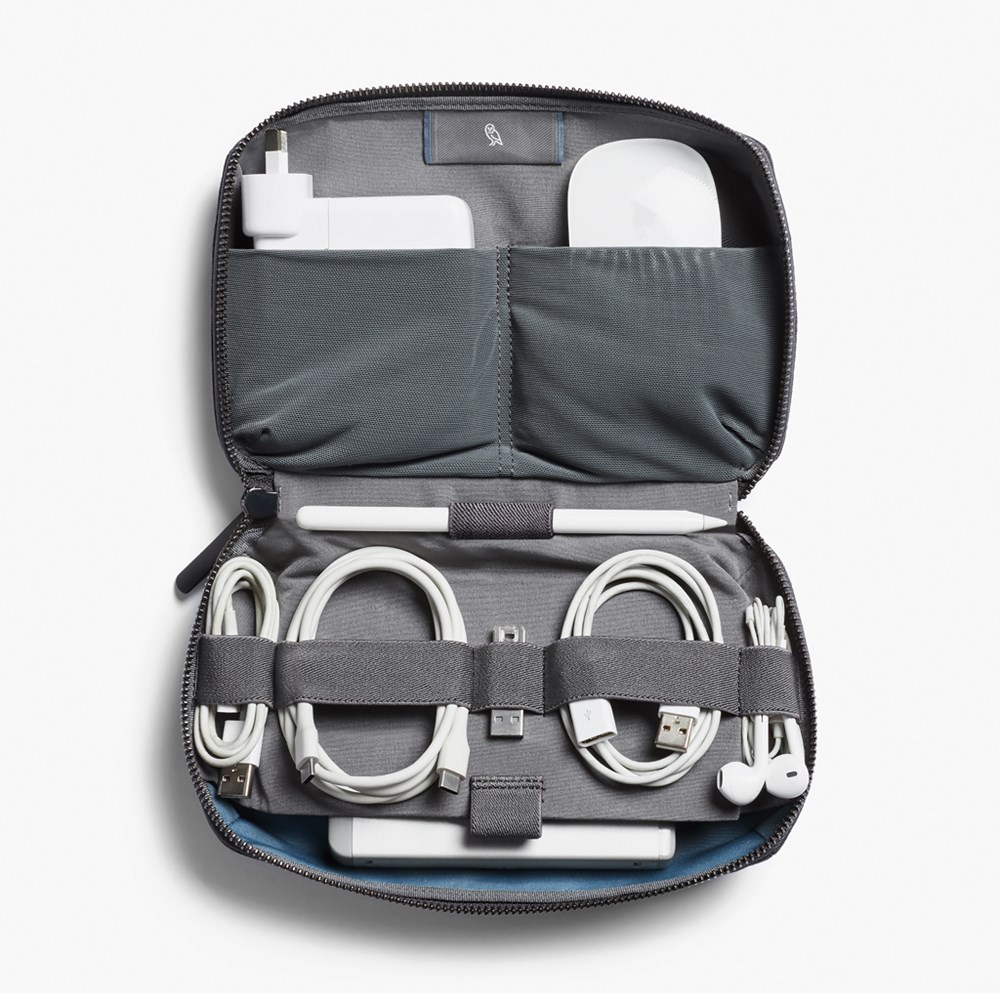 Organisieren Sie Ihr technisches Zubehör, ohne sich zu verheddern. Dieses großzügig bemessene Kit sorgt für Ordnung und Übersicht und hält all Ihr technisches Zubehör an einen Ort. Flaches Reißverschlussfach für einfachen Zugriff. Magnetisches Steckfach für eine Powerbank. Dehnbare Netztaschen zur Aufbewahrung von Kleinteilen.