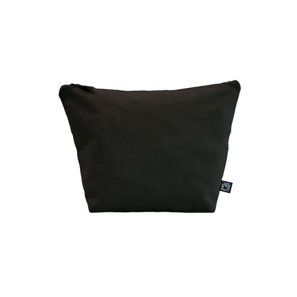 Material 100% Baumwolle, gebürstet Grammatur: ca. 390 g/m² Eigengewicht: ca. 62 g Farbe: schwarz Größe: ca. 18,5 x 27,5 x 9,0 cm (Bodenfalte 9 cm) Reißverschluss: 24 cm Ausführung: - Kettelnaht innen Zertifikate: Oeko-Tex Standard 100, Fairtrade