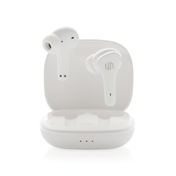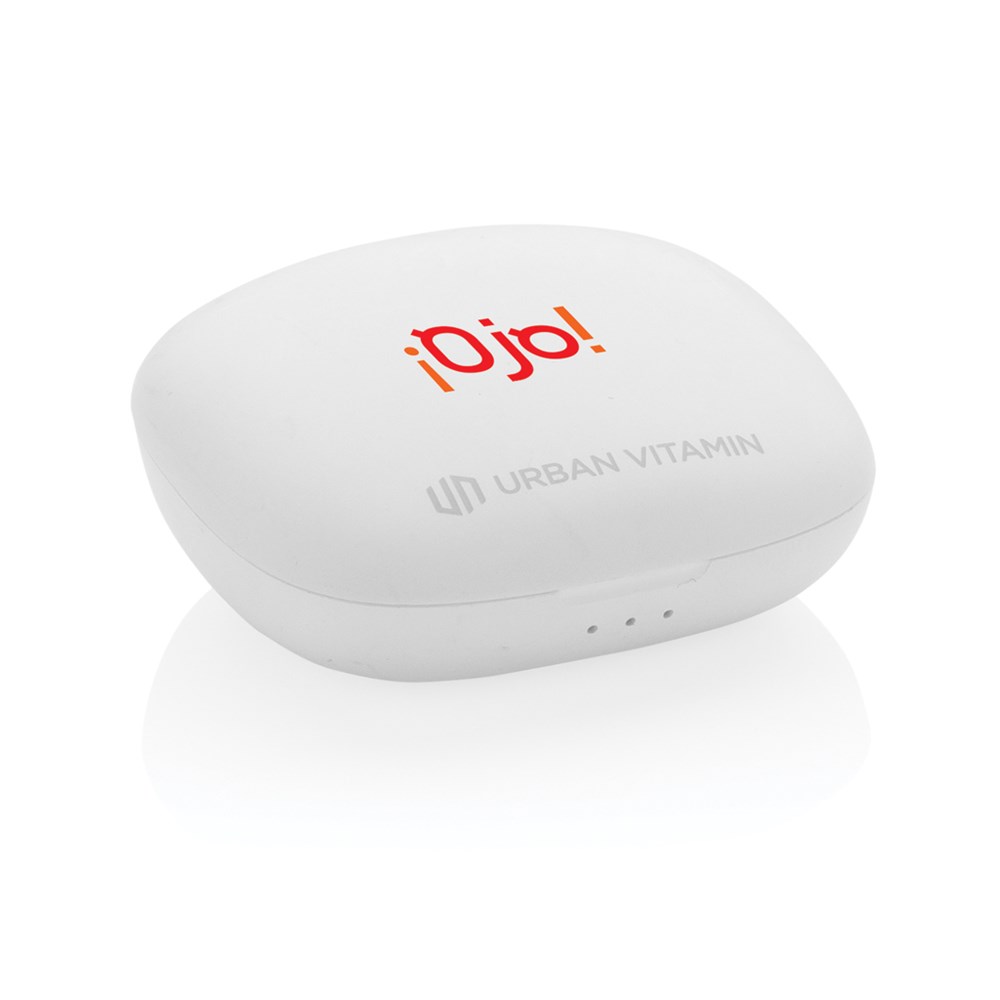 Seien Sie mit diesen kompakten, aber leistungsstarken Ohrhörern wirklich drahtlos. Die Ohrhörer sind mit einem Gaming-Modus mit niedriger Latenz (65 MS) ausgestattet, um die Tonverzögerung zwischen Ihrem Bildschirm und dem Audio beim Spielen zu minimieren. Dank der Umgebungsgeräuschunterdrückung (ENC) sind Ihre Telefongespräche kristallklar, da Umgebungsgeräusche während Ihres Anrufs herausgefiltert werden. Mit Touch-Control-Funktion zur Anrufannahme. Die komfortablen Ohrhörer haben eine Hörzeit von bis zu 5 Stunden und das Ladeetui im Taschenformat ermöglicht bis zu 18 Stunden Wiedergabe. Das IPX 4-Rating macht die Ohrhörer wetter- und schweißfest. Urban Vitamin Artikel werden ohne PVC hergestellt und sind in einer Verpackung mit besonders wenig Kunststoff verpackt.