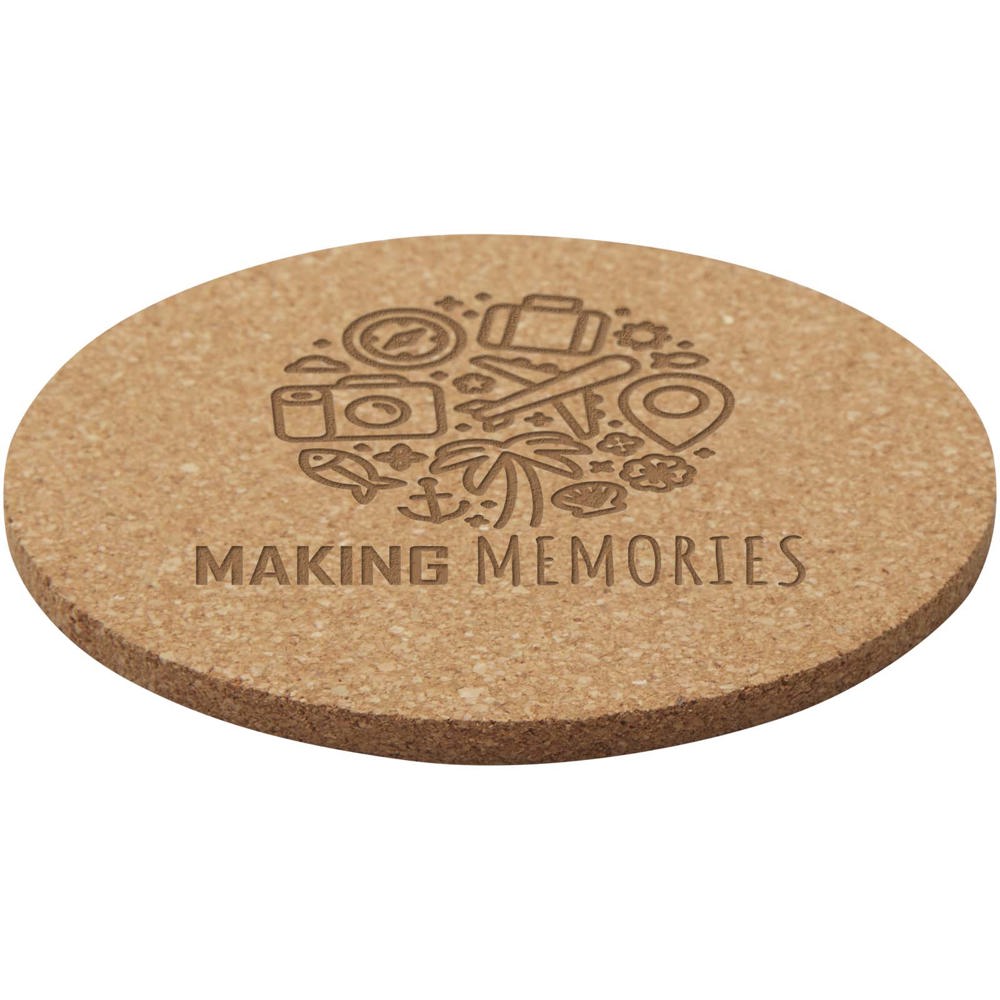 Dieser runde Untersetzer aus Kork stammt aus nachhaltigeren und sozial verantwortlicheren Quellen. Größe 10 x 0,5 cm.