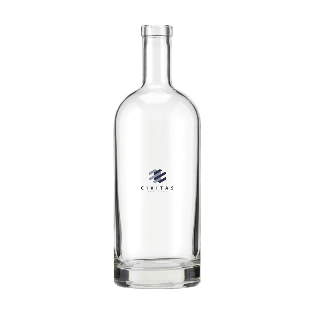 Stilvolle Glaswasserflasche mit stabilem Boden. Das zeitlose Design macht diese Flasche ideal als Tischflasche und besonders geeignet für den Einsatz in der Gastronomie. Die Flasche ist spülmaschinenfest. Um den Aufdruck zu erhalten, wird Waschen von Hand empfohlen. Fassungsvermögen 1L.