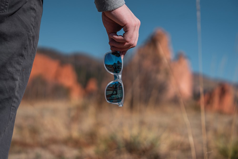 Sonnenbrille mit farbig verspiegelten Gläsern und mit transparentem RCS-zertifiziert recycelten PC-Gestell. Gesamter recycelter Inhalt: 72% bezogen auf das Gesamtgewicht des Artikels. Die RCS-Zertifizierung gewährleistet eine vollständig zertifizierte Lieferkette für die recycelten Materialien. Die Gläser entsprechen EN ISO 12312-1, sind UV 400 und CAT 3. Verpackt in einer FSC®-Kraftbox.