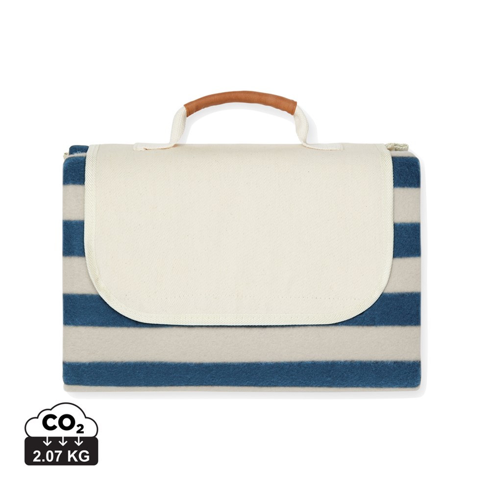Picknickdecke aus weichem Fleece mit Details aus Baumwollcanvas und Kunstleder. Das Vlies besteht zu 100% aus GRS-zertifiziertem rPET. Die GRS-Zertifizierung gewährleistet eine vollständig zertifizierte Lieferkette der recycelten Materialien. Die Rückseite besteht aus wasserabweisendem PEVA. Die clevere Konstruktion erleichtert das Zusammenklappen und Mitnehmen. Gesamter Recyclinganteil: 51% basierend auf dem Gesamtgewicht des Artikels.
