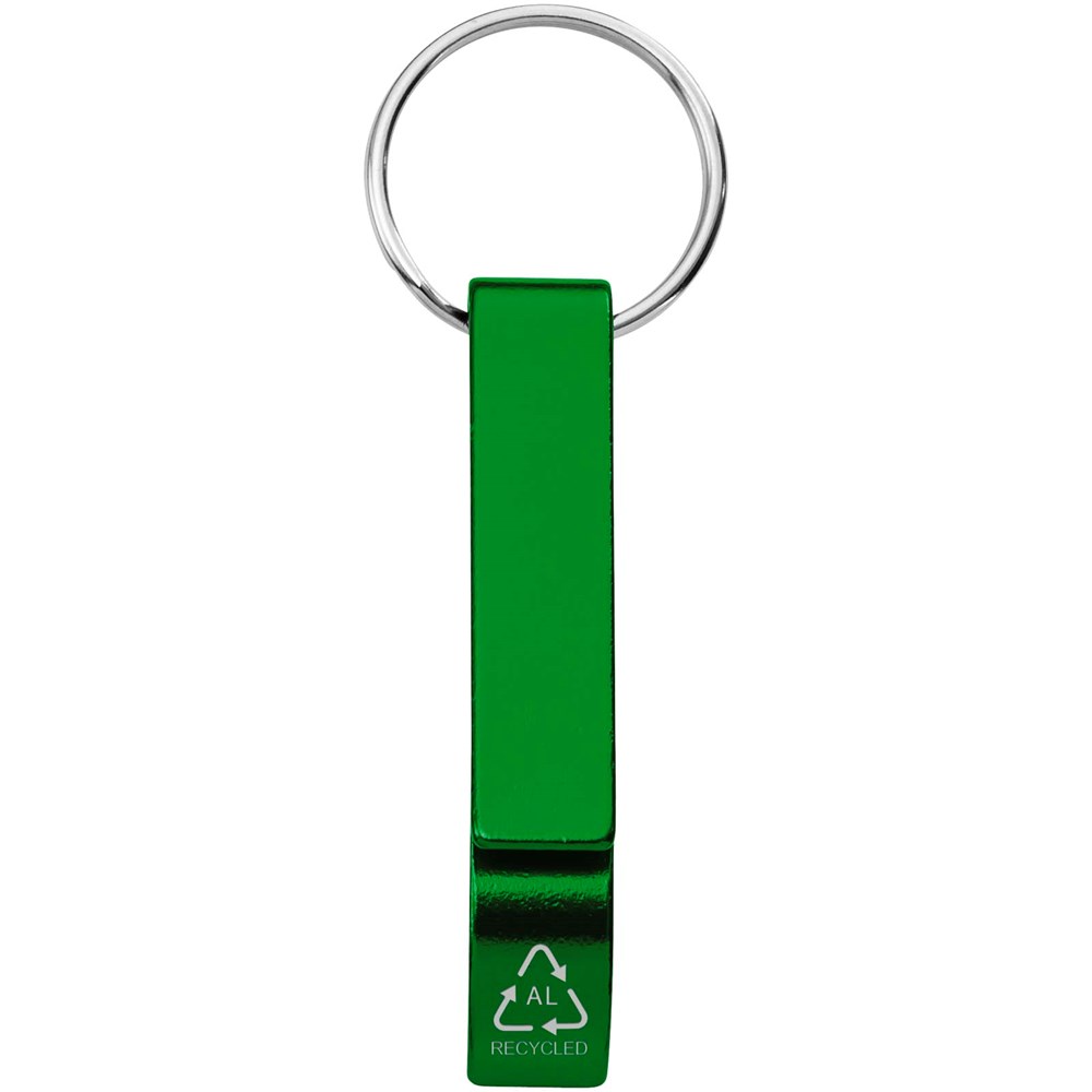 Der starke und leichte Tao-Flaschen- und Dosenöffner mit Schlüsselanhänger besteht zu 83% aus RCS-zertifiziertem, recyceltem Aluminium. Der Recycled Claim Standard (RCS) prüft den Recyclinganteil eines Produkts über die gesamte Lieferkette hinweg. Erhältlich in einer Vielzahl von auffälligen Farben mit Metallic-Finish, die ein aufgedrucktes Logo besonders gut zur Geltung bringen.