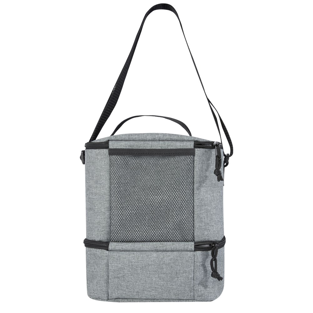 Die Tundra Recycling-Kühltasche bietet reichlich Stauraum für alle Leckereien, die Sie in der Mittagspause benötigen. Ausgestattet mit einem isolierten Fach mit Reißverschluss oben und einem isolierten Fach mit Reißverschluss unten. Das untere Fach eignet sich perfekt für Ihre Bento-Box, und die Schlitztasche auf der Vorderseite ist ideal um andere kleine Gegenstände zu verstauen. Das kühlende PEVA-Futter und die Außenseite sind aus GRS zertifiziertem, recyceltem PET Kunststoff hergestellt.