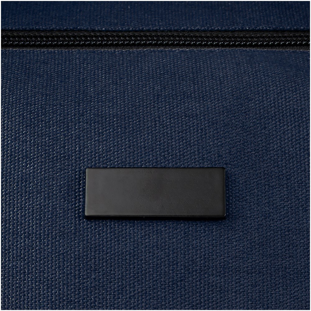 Die Joey Sporttasche mit 25 L besteht aus GRS recyceltem Canvas und GRS RPET-Futter, und verfügt über ein geräumiges Hauptfach mit Reißverschluss und eine Innentasche mit Reißverschluss für eine sichere Aufbewahrung. Sie hat außerdem eine offene Vordertasche und eine weitere Tasche mit Reißverschluss auf der Rückseite für Trolleys. Sie kann entweder an den verstärkten Gurtgriffen oder am abnehmbaren und verstellbaren Schultergurt getragen werden. Die dekorative Metallplatte kann ein Logo durch ihre dezente und matte Oberfläche zum Leuchten bringen.