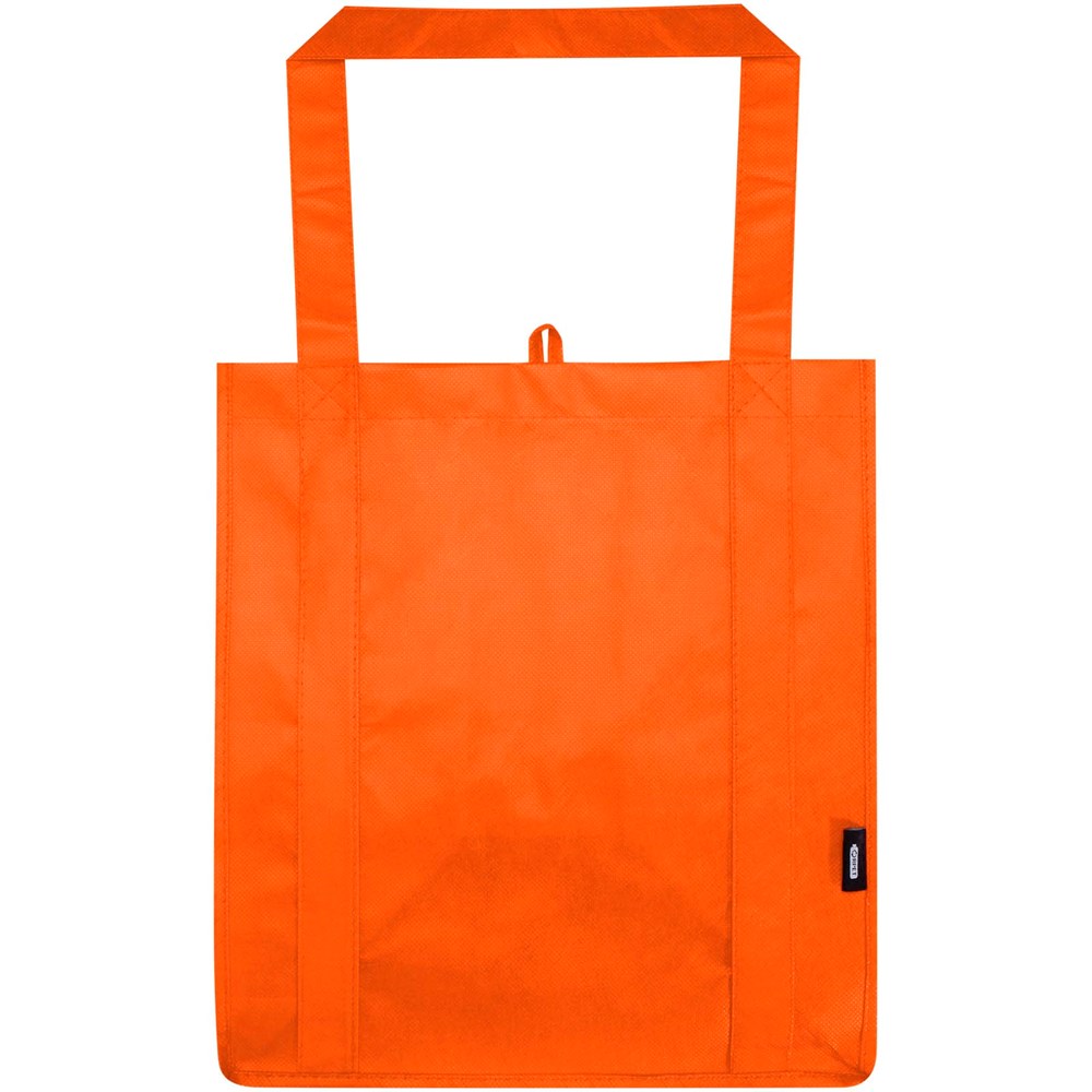 Die Liberty Tragetasche aus GRS-zertifiziertem Recyclingmaterial besteht aus strapazierfähigem und reißfestem RPET-Non Woven und verfügt über einen harten Boden, der sie vielseitig und stabil macht. Die Tasche hat ein großes Hauptfach und 25 cm lange Tragegriffe. Fassungsvermögen: 29 Liter. Beständigkeit bis zu 12 kg.
