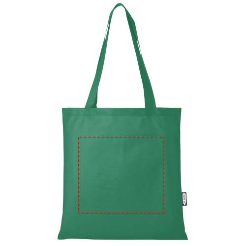 Die Zeus GRS-recycelte große Tragetasche aus strapazierfähigem und reißfestem RPET ist eine perfekte und nachhaltigere Option für Messen oder Konferenzen. Ihr schlankes Design macht sie zu einem eleganten Modell, das sich für den Transport von leichten Gegenständen wie einem Notebook und einem Stift eignet. Die Griffe sind 29 cm lang, sodass die Tragetasche leicht über der Schulter getragen werden kann. Belastbarkeit bis zu 5 kg.