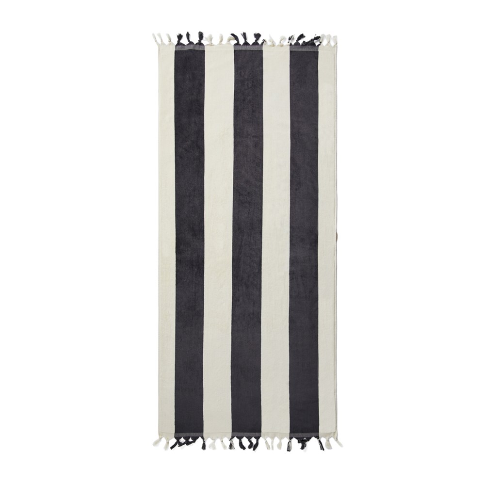 Ein luxuriöses Strandtuch aus Baumwolle mit Quasten an den kurzen Seiten für entspannte Stunden am Strand oder am Pool. Unsere Badetücher mit einer 450 g/m2 Qualität werden in Indien gefertigt. OEKO-TEX® STANDARD 100. 09.HIN.68091. Hohenstein HTTI. Größe: 180x80cm