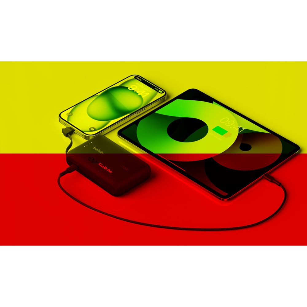 Powerbank 10.000 mAh mit integriertem Kabel, von der Marke Belkin. Das Gehäuse (ohne Kabel) besteht zu 72% aus recycelten Materialien. Mit Pass-Through-Ladefunktion: Geräte können aufgeladen werden, während die Powerbank selbst aufgeladen wird. Laden Sie zwei Geräte gleichzeitig mit einer Leistung von bis zu 20 W über das integrierte USB-C-Kabel und den zusätzlichen Anschluss. Diese Powerbank bietet bis zu 43 Stunden zusätzliche Akkulaufzeit in einem kompakten und leichten Gehäuse. Mit LED-Anzeigeleuchte. Mit LED-Anzeigeleuchte. 100% kunststofffreie Verpackung. Hergestellt aus recyceltem Kunststoff. Inklusive Gebrauchsanweisung. Verpackt pro Stück.