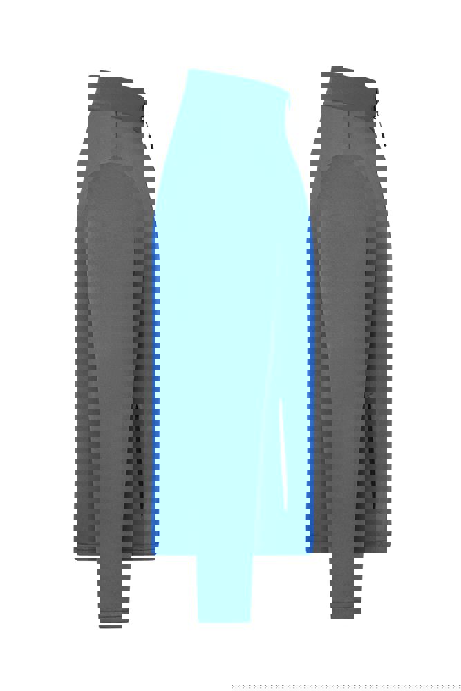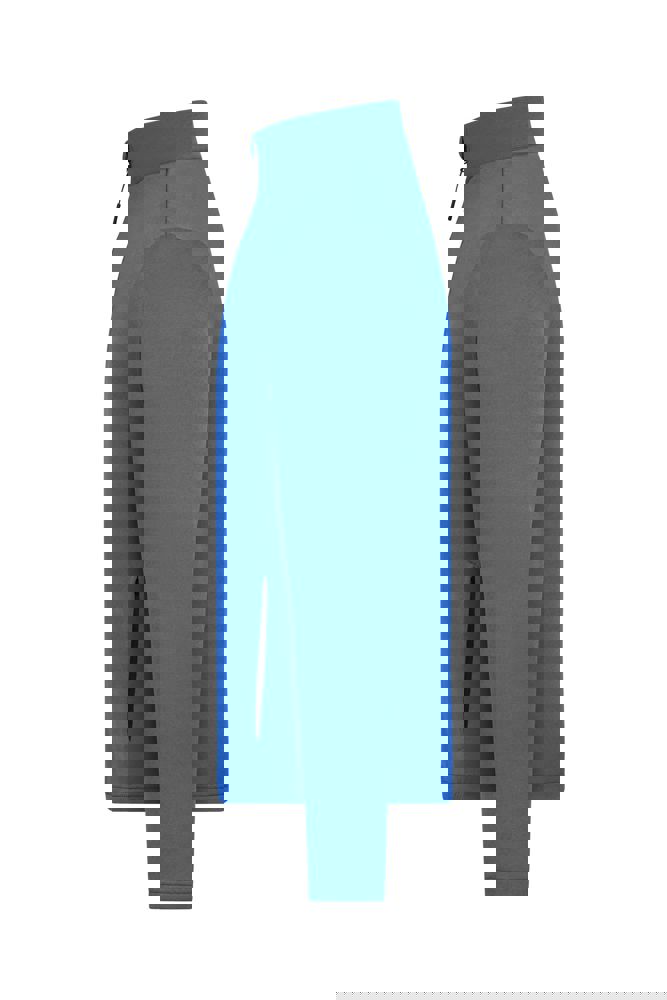 Angenehm weiche, bi-elastische Qualität Außenseite glatt, Innenseite mit strukturierter Fleeceoptik Durchgehend unterlegter Reißverschluss mit Kinnschutz 2 seitliche Taschen mit Reißverschluss Kontrastfarbige Reißverschlüsse Stehkragen JN1387: leicht tailliert 1/2 Oberweite: 50 cm 1/2 Saumweite: 49 cm Länge ab Schulter: 65 cm Ärmel Länge: 65 cm GRS Standard Stehkragen