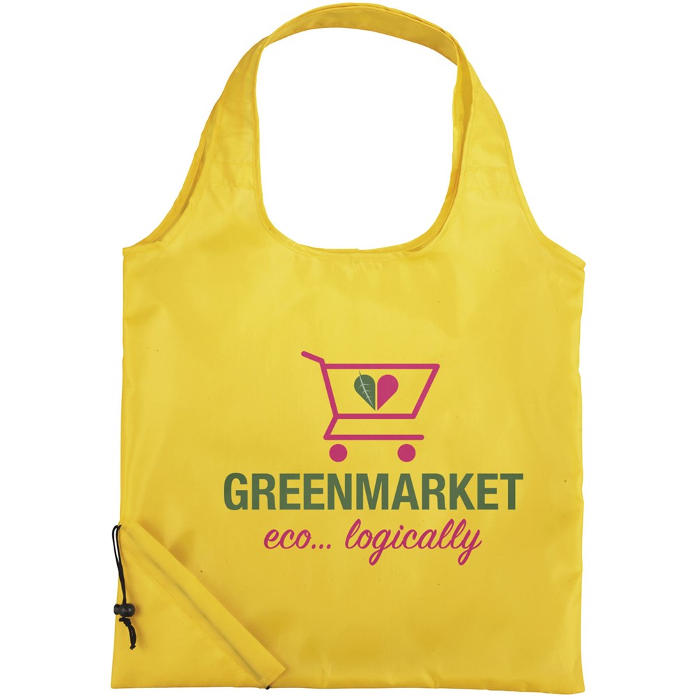 Ob als Geschenk für ein Festival oder zum Einkaufen, die Bungalow-Tasche ist eine gute Wahl für leichte Gegenstände. Die Tragetasche bietet viel Platz für kleine oder große Logos und lässt sich leicht in der Hand oder über der Schulter tragen. Die Tasche lässt sich in der Ecke mit Kordelzugverschluss zusammenziehen und sit dadurch leicht zu verstauen. Belastbar bis zu 5 kg.