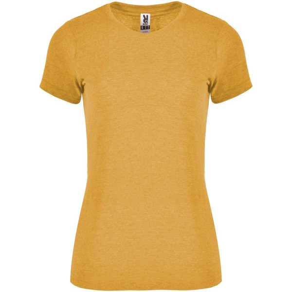 T-Shirt mit meliertem Effekt. Tailliertes Design. Rundhalsausschnitt aus 1×1-Rippstrick mit innenliegenden, verstärkten und verdeckten Nähten. Schlauchförmiger Stoff. Abnehmbares Etikett.