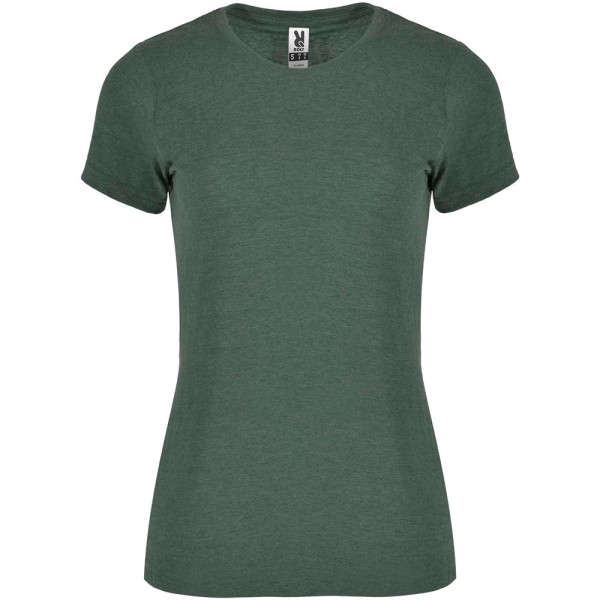 T-Shirt mit meliertem Effekt. Tailliertes Design. Rundhalsausschnitt aus 1×1-Rippstrick mit innenliegenden, verstärkten und verdeckten Nähten. Schlauchförmiger Stoff. Abnehmbares Etikett.