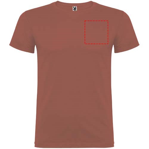 Kurzärmeliges T-Shirt mit doppellagigem Rundhalsausschnitt aus Elasthan, hergestellt aus schlauchförmigem Material für Erwachsene. Verstärkte und verdeckte Nähte am Kragen. Herausnehmbares Etikett. Das Modell ist 190 cm groß und trägt Größe L.