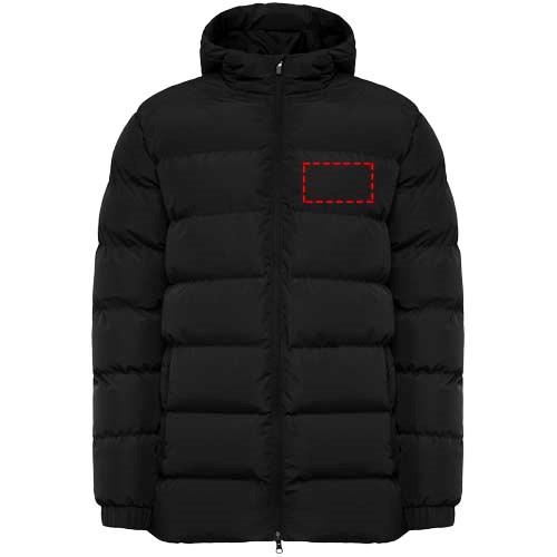 Wattierter Sportparka. Kapuze mit Visier. Frontreißverschluss mit passendem Reißverschlusszieher und Kinnschutz. Elastische Ärmelbündchen. Zwei Seitentaschen mit Reißverschluss. Innere Brusttasche links. Innerer Zugang zur Aufbewahrung. Herausnehmbares Etikett. Wasserdicht. Winddicht.