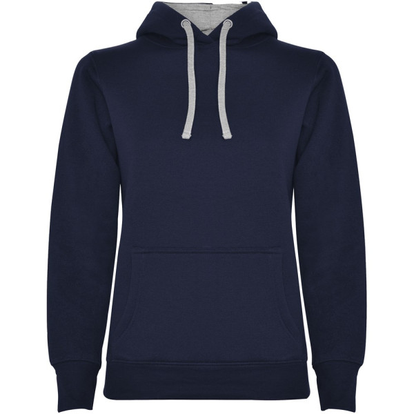 Figurbetontes Sweatshirt mit zweifarbiger, doppellagiger Kapuze, verstellbarem Kordelzug in Kontrastfarbe, verdeckten Nähten am Kragen und Kängurutasche. Elastischer 1×1-Rippstrick an Ärmeln und Saum. Detail mit Daumenschlitz. Herausnehmbares Etikett. Das Modell ist 179 cm groß und trägt Größe S.