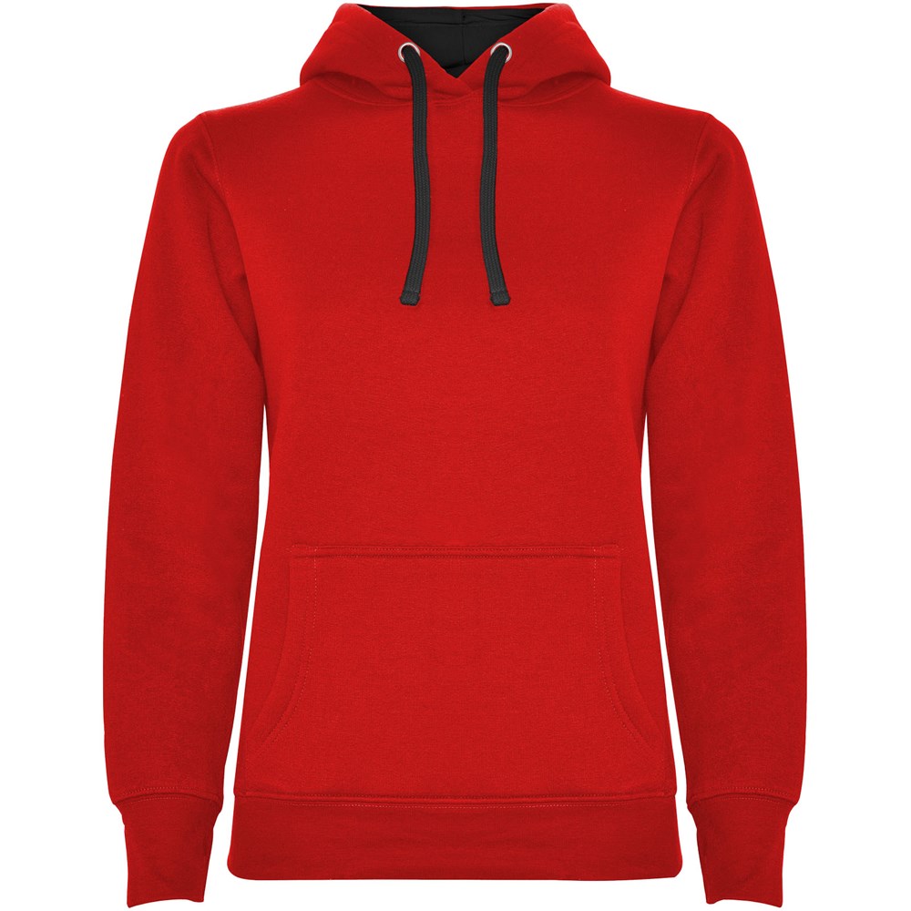 Figurbetontes Sweatshirt mit zweifarbiger, doppellagiger Kapuze, verstellbarem Kordelzug in Kontrastfarbe, verdeckten Nähten am Kragen und Kängurutasche. Elastischer 1×1-Rippstrick an Ärmeln und Saum. Detail mit Daumenschlitz. Herausnehmbares Etikett. Das Modell ist 179 cm groß und trägt Größe S.