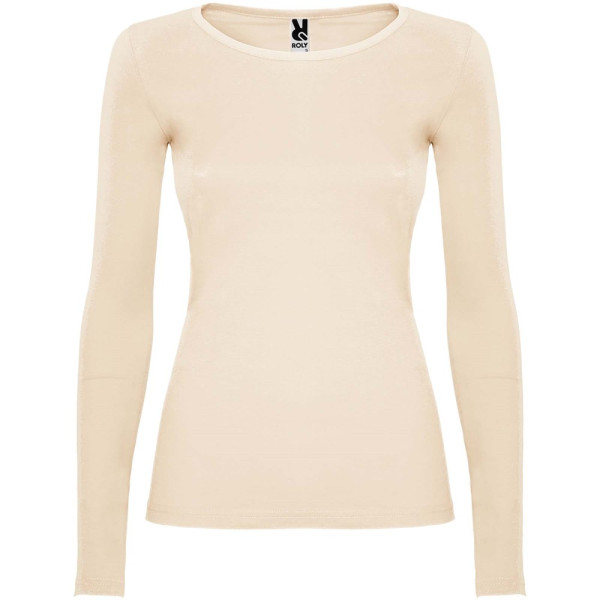 Langärmeliges, halb tailliertes T-Shirt mit feinem Halsbündchen. Keine Ärmelbündchen. Seitennähte. Herausnehmbares Etikett.