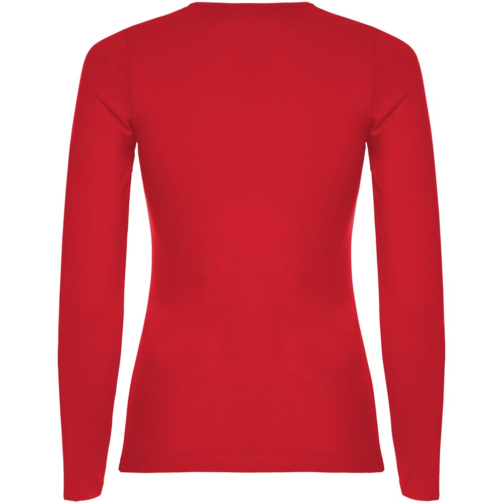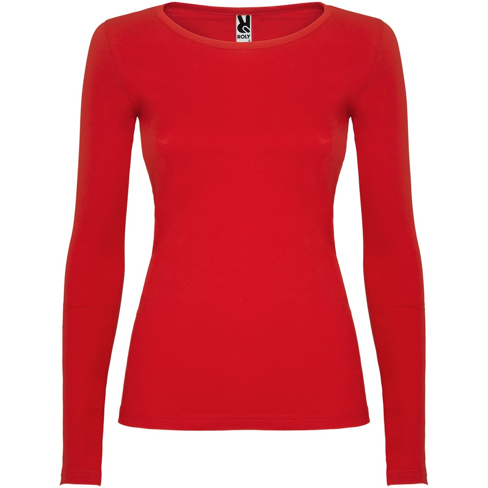 Langärmeliges, halb tailliertes T-Shirt mit feinem Halsbündchen. Keine Ärmelbündchen. Seitennähte. Herausnehmbares Etikett.