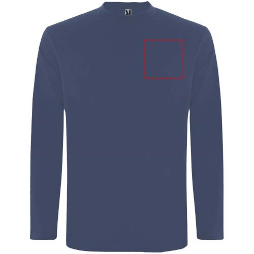 Langärmeliges Shirt aus Schlauchgewebe mit Rundhalsausschnitt aus 4 Schichten. Verstärkte Nähte an Kragen und Schultern. Keine Ärmelbündchen. Herausnehmbares Etikett. Schlauchdesign in Erwachsenengrößen und Seitennähte in Kindergrößen. Das Modell ist 185 cm groß und trägt Größe L.