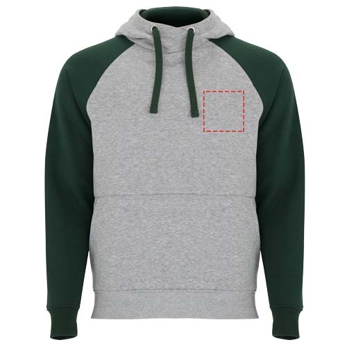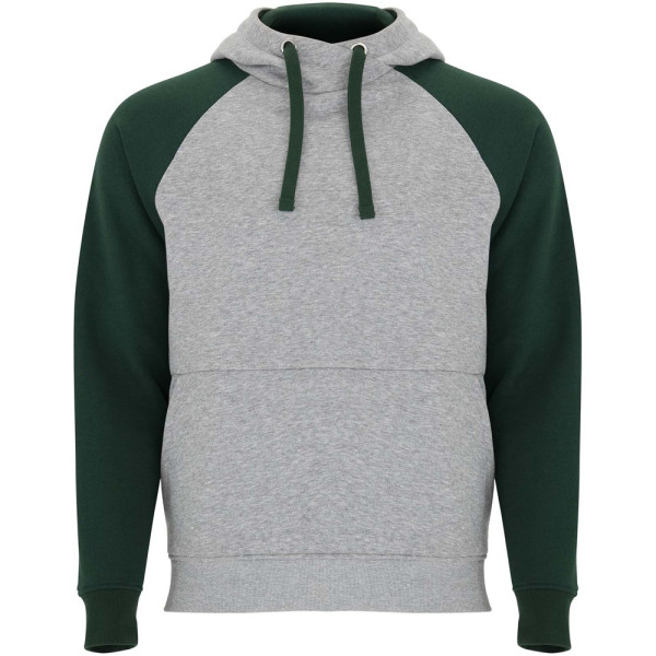 Zweifarbiger Unisex Kapuzenpulli. Kapuze mit gekreuztem Kragen und Metallösen. Innenkapuze, Kordelzug und Raglanärmel in Kontrastfarbe. Kängurutasche. Bündchen und Saum aus elastischem 1×1-Rippstrick. Abnehmbares Etikett.