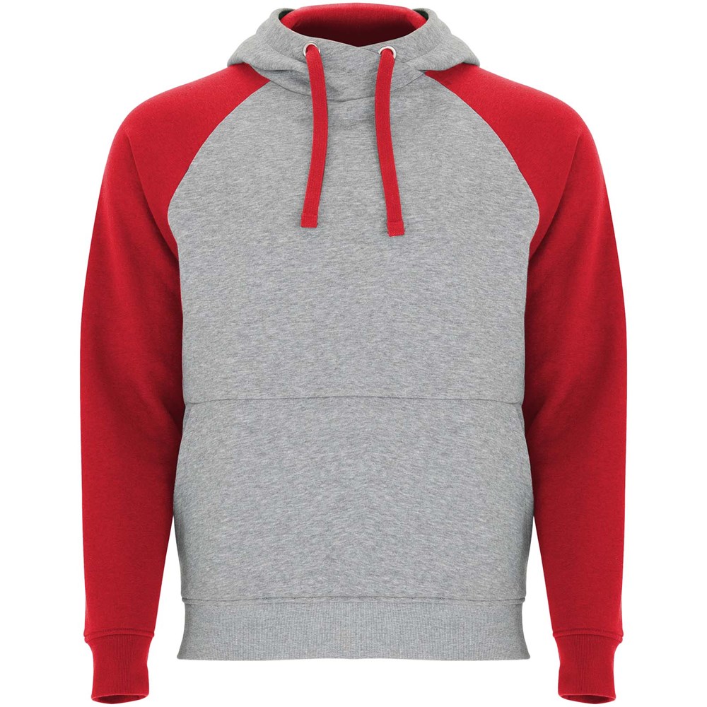 Zweifarbiger Unisex Kapuzenpulli. Kapuze mit gekreuztem Kragen und Metallösen. Innenkapuze, Kordelzug und Raglanärmel in Kontrastfarbe. Kängurutasche. Bündchen und Saum aus elastischem 1×1-Rippstrick. Abnehmbares Etikett.