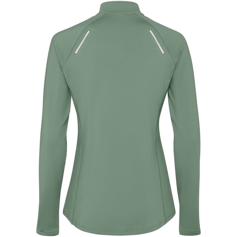 Langarm Funktions-Sweatshirt für Damen mit Raglanschnitt. Schlanke Passform. Kragen mit halbem Reißverschluss und reflektierenden Details. Verstärkte Nahtabdeckungen. Ärmelbündchen mit Daumenöffnung. Reflektierende Details am Rücken. Rückensaum etwas länger als der Frontsaum. Warmes gebürstetes Innenmaterial.