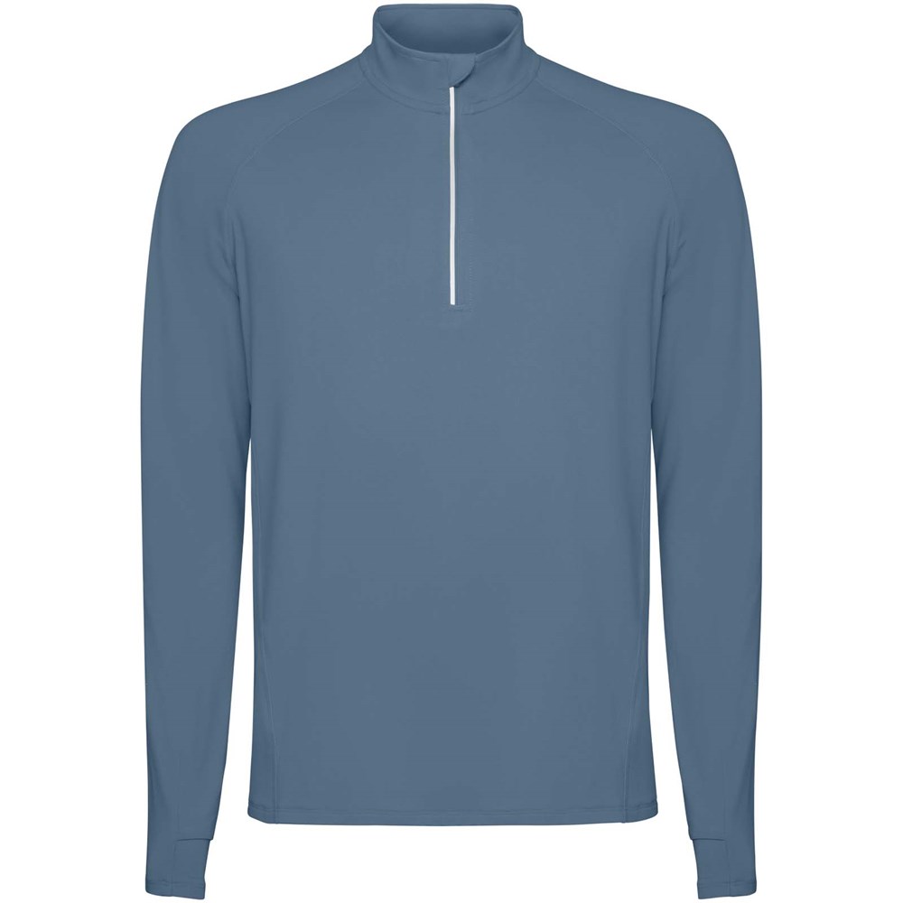 Langarm Funktions-Sweatshirt für Herren mit Raglanschnitt. Kragen mit halbem Reißverschluss und reflektierenden Details. Verstärkte Nahtabdeckungen. Ärmelbündchen mit Daumenöffnung. Reflektierende Details am Rücken. Rückensaum etwas länger als der Frontsaum. Warmes gebürstetes Innenmaterial.