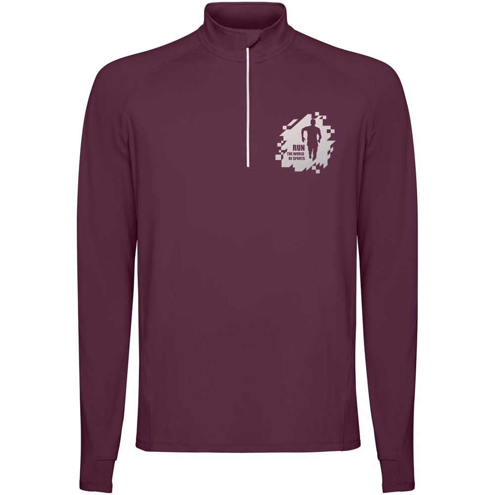 Langarm Funktions-Sweatshirt für Herren mit Raglanschnitt. Kragen mit halbem Reißverschluss und reflektierenden Details. Verstärkte Nahtabdeckungen. Ärmelbündchen mit Daumenöffnung. Reflektierende Details am Rücken. Rückensaum etwas länger als der Frontsaum. Warmes gebürstetes Innenmaterial.
