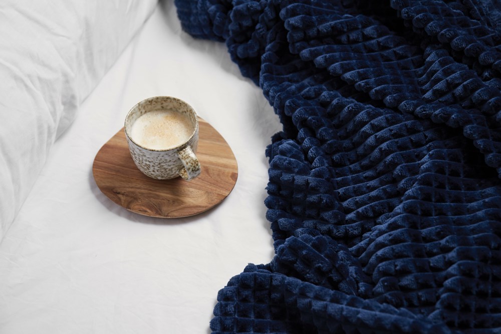 Decke170 x 130cm mit Karomuster, hergestellt aus 69% GRS zertifiziert recyceltem PET. Die GRS-Zertifizierung (Global Recycled Standard) garantiert, dass die gesamte Lieferkette der recycelten Materialien zertifiziert ist. Der Gesamtanteil an recycelten Materialien wird auf das Gesamtgewicht des Produkts bezogen.