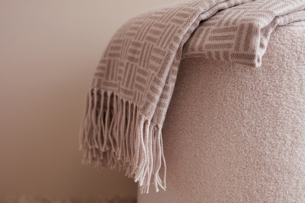 Jacquard-gewebte Decke mit einem feinsinnigen geometrischen Muster, das der Decke ein stilvolles Design verleiht – ideal für Ihr Zuhause. Eine hübsche Decke für alle, die nicht nur Wert auf Bequemlichkeit legen, sondern ihrem Zuhause auch einen stilvollen Look verleihen wollen. Hergestellt aus 100% Acryl, einem künstlich hergestellten synthetischen Material mit Eigenschaften, die Wollfasern nahe komen. 220gr/m². 130x170cm.
