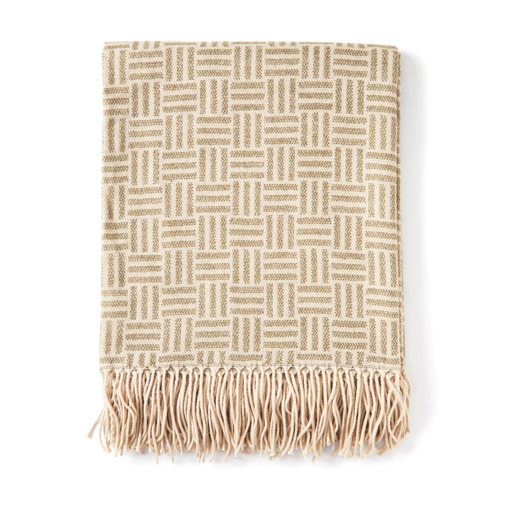 Jacquard-gewebte Decke mit einem feinsinnigen geometrischen Muster, das der Decke ein stilvolles Design verleiht – ideal für Ihr Zuhause. Eine hübsche Decke für alle, die nicht nur Wert auf Bequemlichkeit legen, sondern ihrem Zuhause auch einen stilvollen Look verleihen wollen. Hergestellt aus 100% Acryl, einem künstlich hergestellten synthetischen Material mit Eigenschaften, die Wollfasern nahe komen. 220gr/m². 130x170cm.