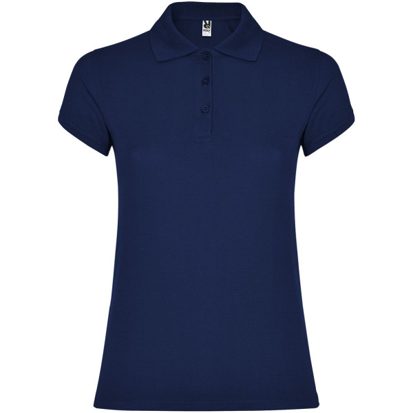 Kurzärmeliges Poloshirt für Damen. Verstärkte und verdeckte Nähte am Innenkragen. 1x1 Rippstrickbündchen an Ärmeln und Kragen. Seitennähte. 3-Knopfleiste und Seitenschlitze. Optionale Tasche. Herausnehmbares Etikett. Das Modell ist 179 cm groß und trägt Größe S.