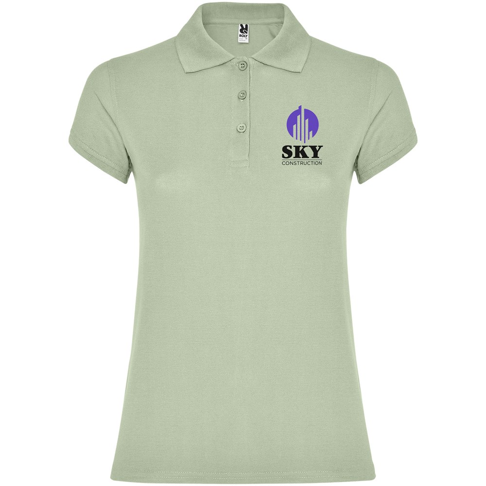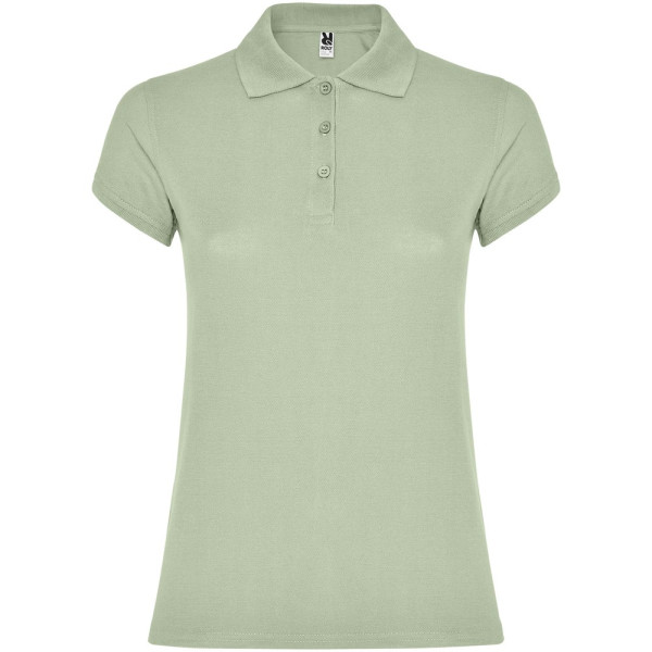 Kurzärmeliges Poloshirt für Damen. Verstärkte und verdeckte Nähte am Innenkragen. 1x1 Rippstrickbündchen an Ärmeln und Kragen. Seitennähte. 3-Knopfleiste und Seitenschlitze. Optionale Tasche. Herausnehmbares Etikett. Das Modell ist 179 cm groß und trägt Größe S.