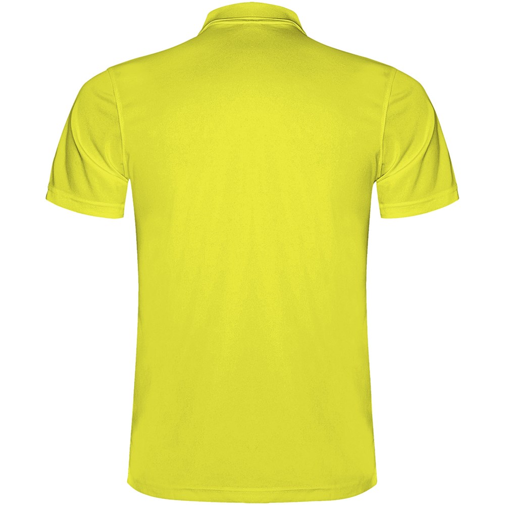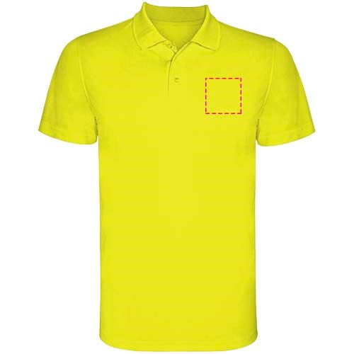 Kurzärmeliges Funktions-Poloshirt. Gestrickter Kragen mit 3-Knopfleiste. Atmungsaktives, leicht zu waschendes und zu trocknendes Material. Herausnehmbares Etikett. Technisches Gewebe. Atmungsaktiver Stoff.