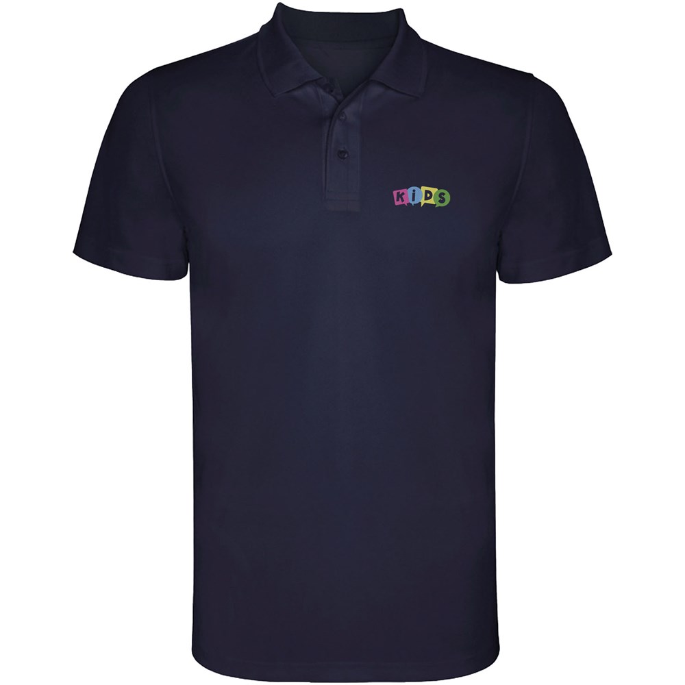 Kurzärmeliges Funktions-Poloshirt. Gestrickter Kragen mit 3-Knopfleiste. Atmungsaktives, leicht zu waschendes und zu trocknendes Material. Herausnehmbares Etikett. Technisches Gewebe. Atmungsaktiver Stoff.