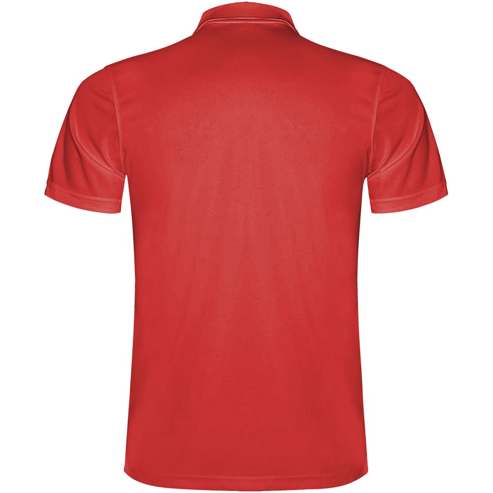 Kurzärmeliges Funktions-Poloshirt. Gestrickter Kragen mit 3-Knopfleiste. Atmungsaktives, leicht zu waschendes und zu trocknendes Material. Herausnehmbares Etikett. Technisches Gewebe. Atmungsaktiver Stoff.