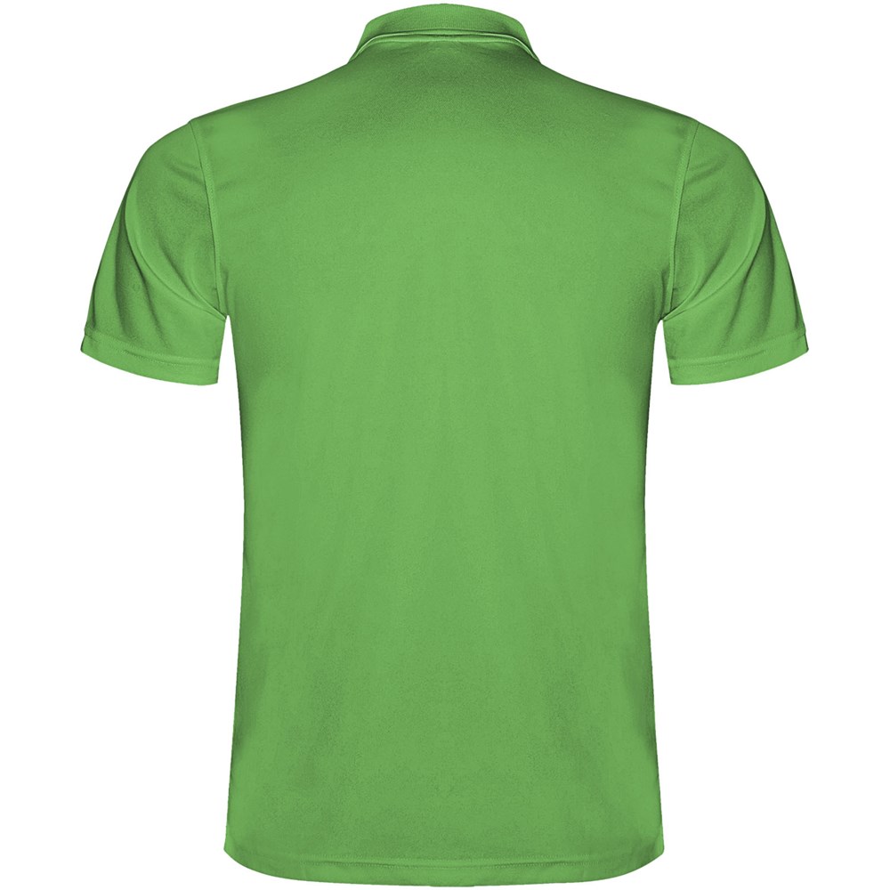 Kurzärmeliges Funktions-Poloshirt. Gestrickter Kragen mit 3-Knopfleiste. Atmungsaktives, leicht zu waschendes und zu trocknendes Material. Herausnehmbares Etikett. Technisches Gewebe. Atmungsaktiver Stoff.