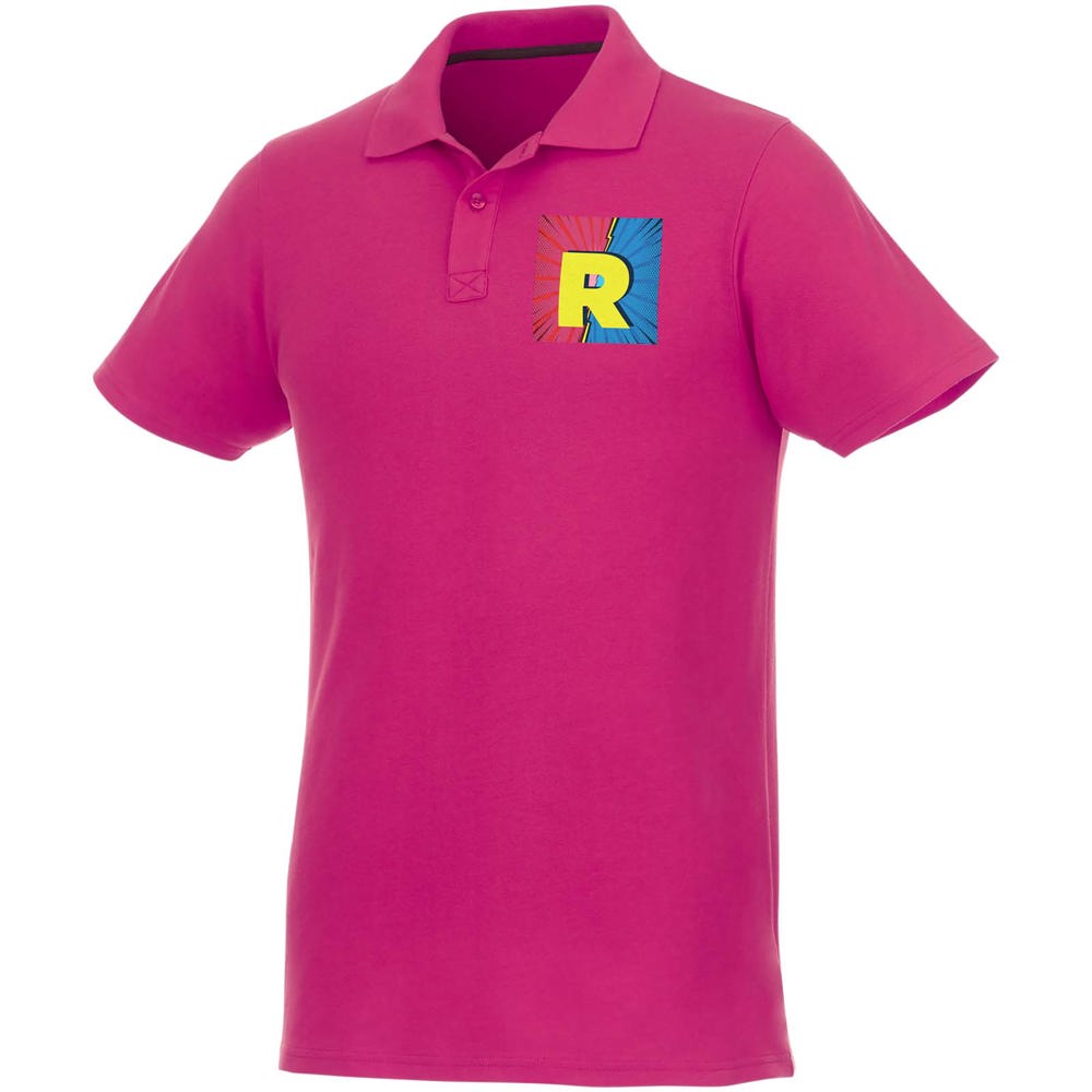Das Helios Kurzarm-Poloshirt für Herren kombiniert raffinierten Stil mit einzigartigen, individuellen Branding-Optionen. Es ist aus 180 g/m² Baumwollpiqué gefertigt und bietet leichten Komfort und Strapazierfähigkeit. Die Innenausstattung, einschließlich des abreißbaren Hauptetiketts, ermöglicht die Platzierung eines individuellen Logos und macht es zur perfekten Wahl für jede Veranstaltung. Mit seinem klassischen Polokragen und den kurzen Ärmeln lässt es sich mühelos von legeren zu formellen Anlässen kombinieren. Mehrere Farben verfügbar, passend zu jeder Marke.