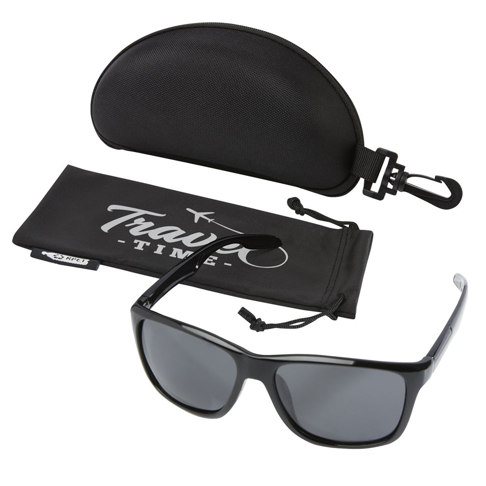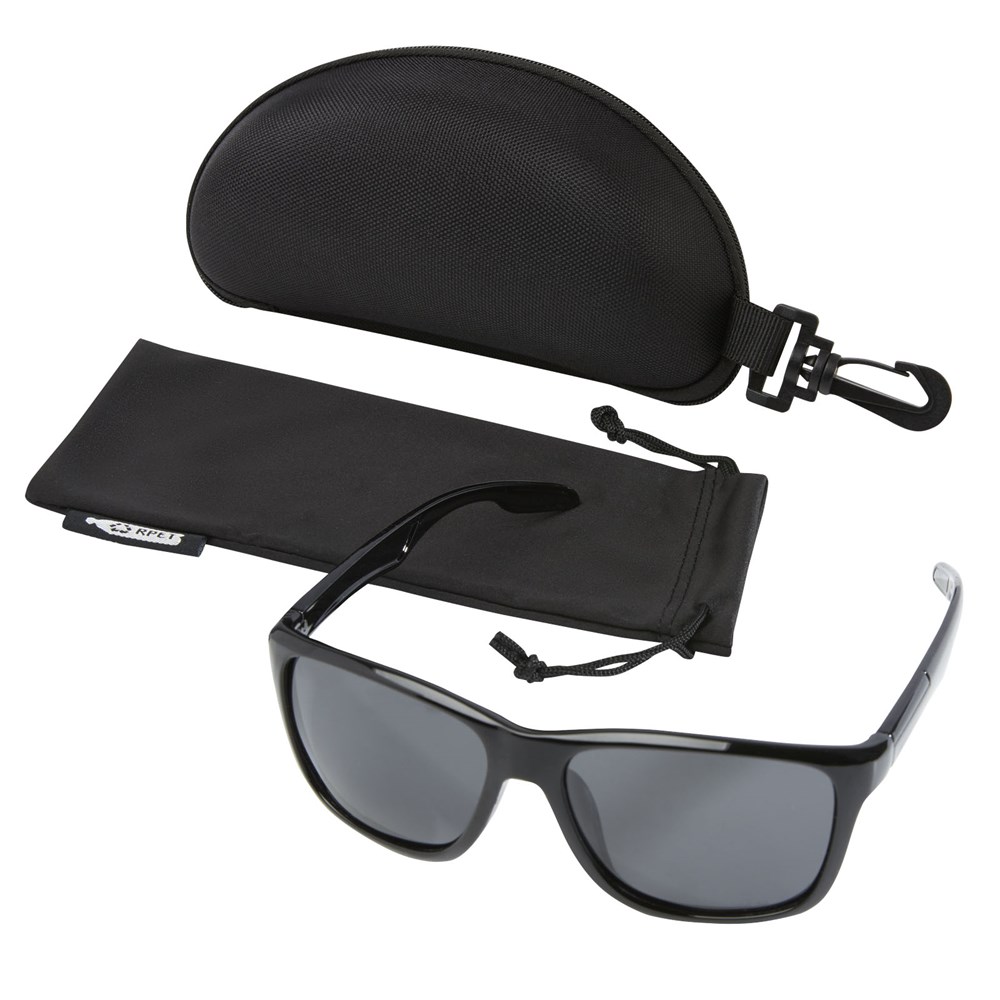 Polarisierende Sonnenbrille aus recyceltem Kunststoff. Der hochwertig verarbeitete Rahmen und die Bügel bestehen aus Rilsan Clear G850 Rnew, einem Polymerderivat von Rizinusöl. Dieses Material ist eine nachhaltige Alternative zu herkömmlichen Kunststoffen und eignet sich auch hervorragend für die Herstellung leichter und flexibler Brillengestelle mit hohem Tragekomfort. Die Gläser sind polarisiert, was die Reflexion des Sonnenlichts verhindert. Ideal zum Autofahren und für alle sonnigen Sommer- und Winteraktivitäten im Freien. Diese Brille entspricht der Norm EN ISO 12312-1, hat UV400-Gläser und ist in die Kategorie 3 eingestuft. Geliefert mit einer weichen Aufbewahrungstasche (18 x 9 cm) aus recyceltem PET Kunststoff, die auch als Reinigungstuch dient. Verpackt in einem Gehäuse aus Hartschale (18 x 8 x 6,5 cm), ebenfalls aus recyceltem PET Kunststoff.