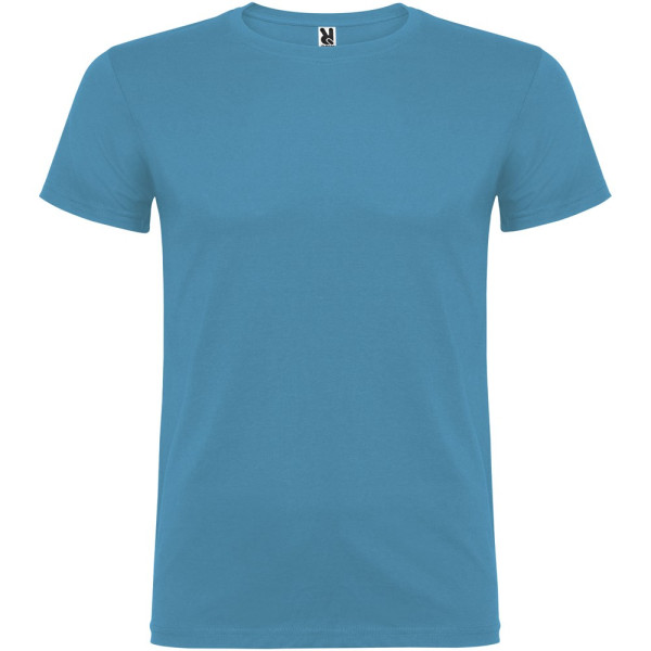 Kurzärmeliges T-Shirt mit doppellagigem Rundhalsausschnitt aus Elasthan, hergestellt aus mit Seitennähten. Verstärkte und verdeckte Nähte am Kragen. Herausnehmbares Etikett. Das Modell ist 120 cm groß und trägt Größe 5/6.